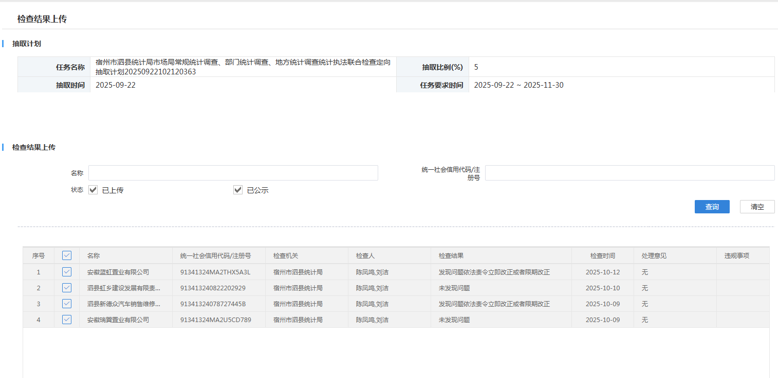2025年度统计局双随机检查对象、检查人员、抽查情况及查处结果信息公示 |