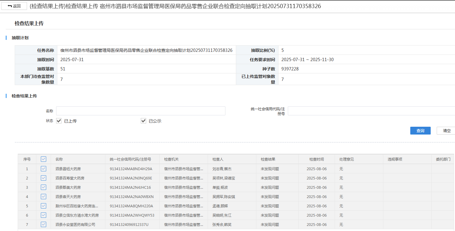 宿州市泗县市场监督管理局医保局药品零售企业联合检查定向抽取计划