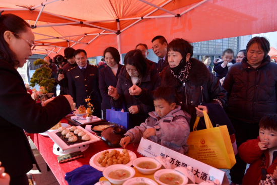 活动现场还设置了泗县金丝绞瓜宣传专区,合作社、龙头企业和美食制作单位参与推介。登上2026年央视春晚和元宵晚会的中国地理标志产品泗县金丝绞瓜、金丝绞瓜制品、金灿灿的绞瓜丝、绞瓜饺子、绞瓜馅饼,夺目亮眼。现场制作的绞瓜丸子、绞瓜汁味道鲜美,获得群众争抢品尝和好评。