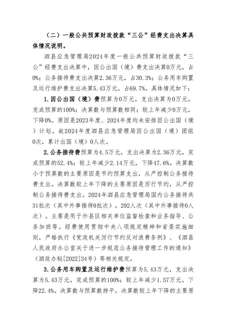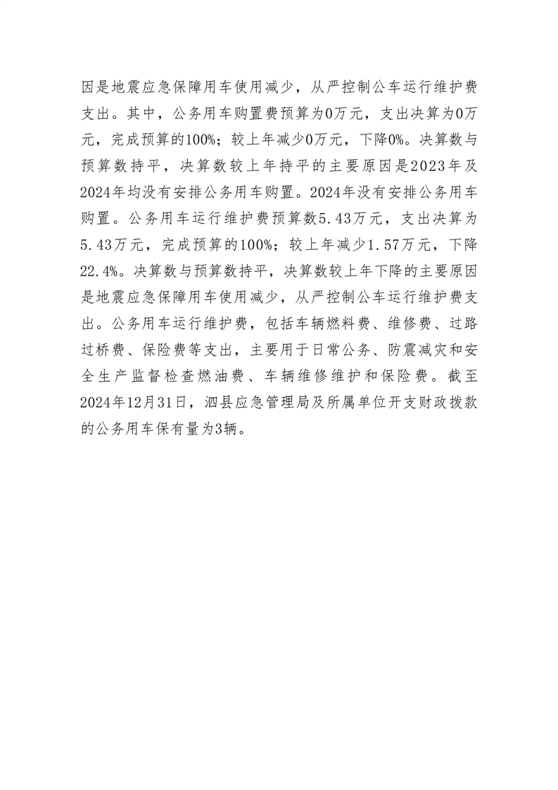 泗县应急管理局2024年度一般公共预算财政拨款“三公”经费支出决算