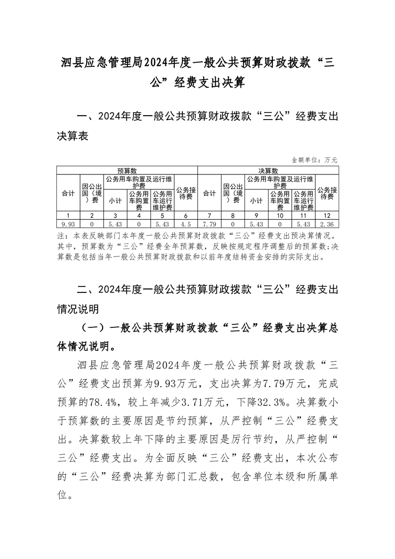 泗县应急管理局2024年度一般公共预算财政拨款“三公”经费支出决算 |