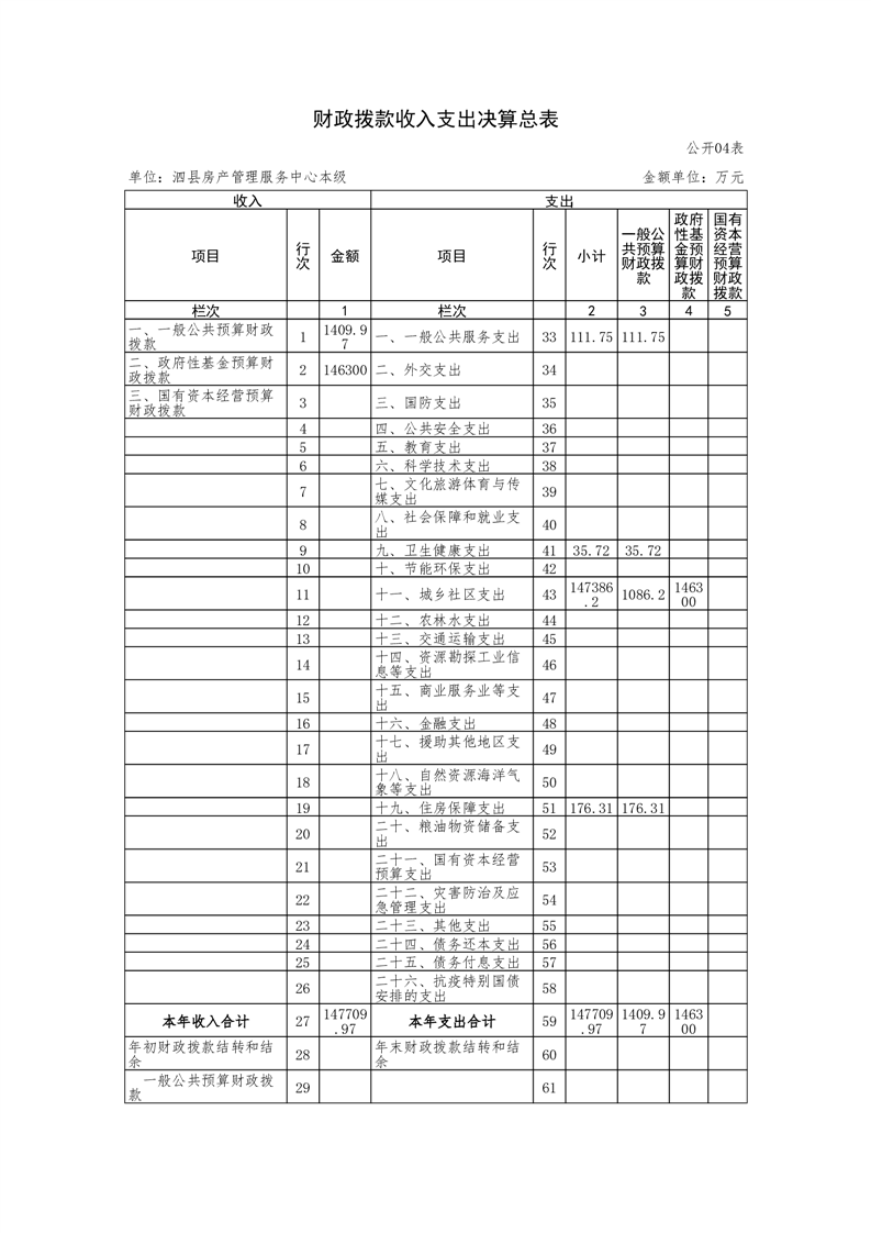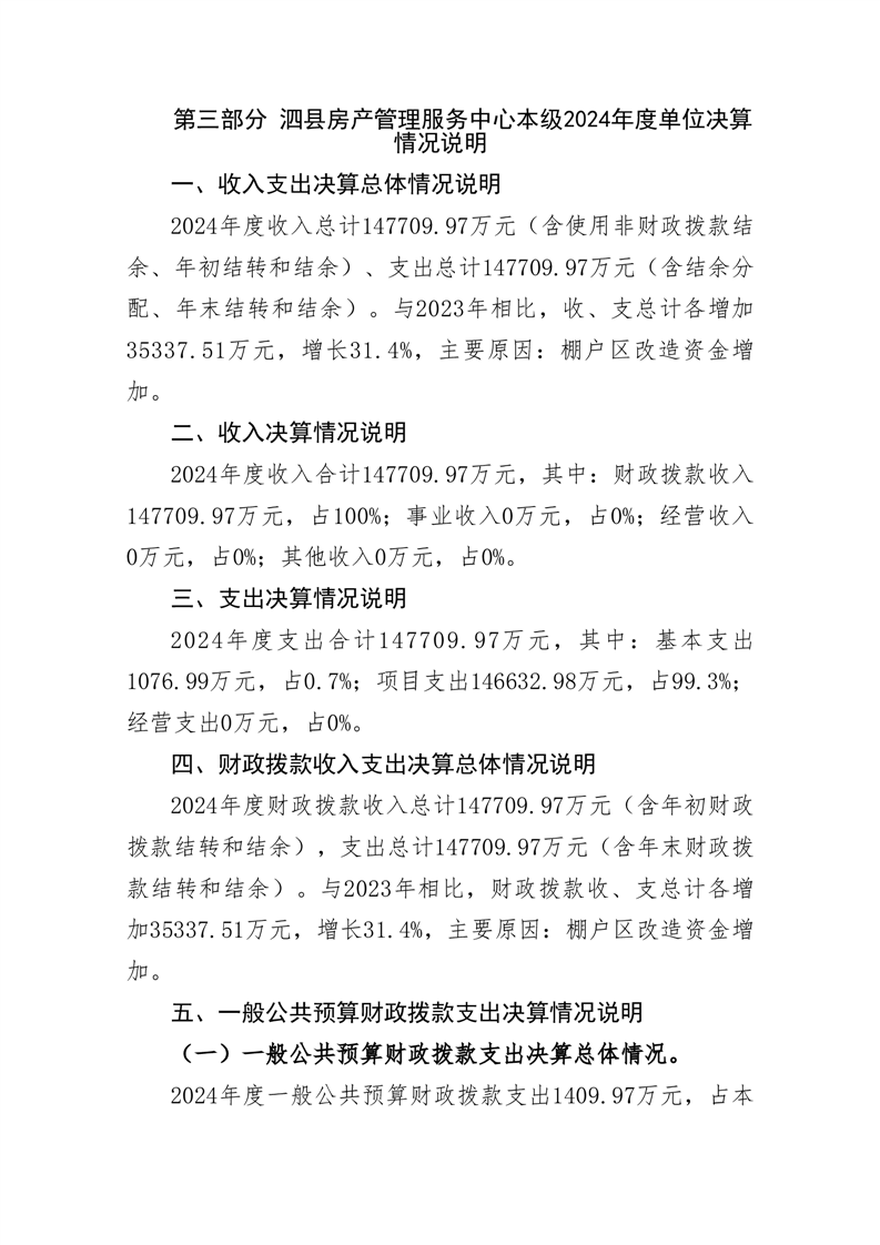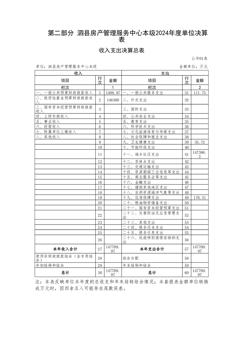 泗县房产管理服务中心本级2024年度单位决算公开 |