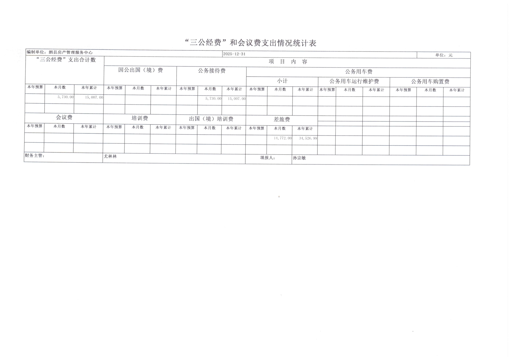 2025年12月“三公经费”和会议费支出情况统计表 |