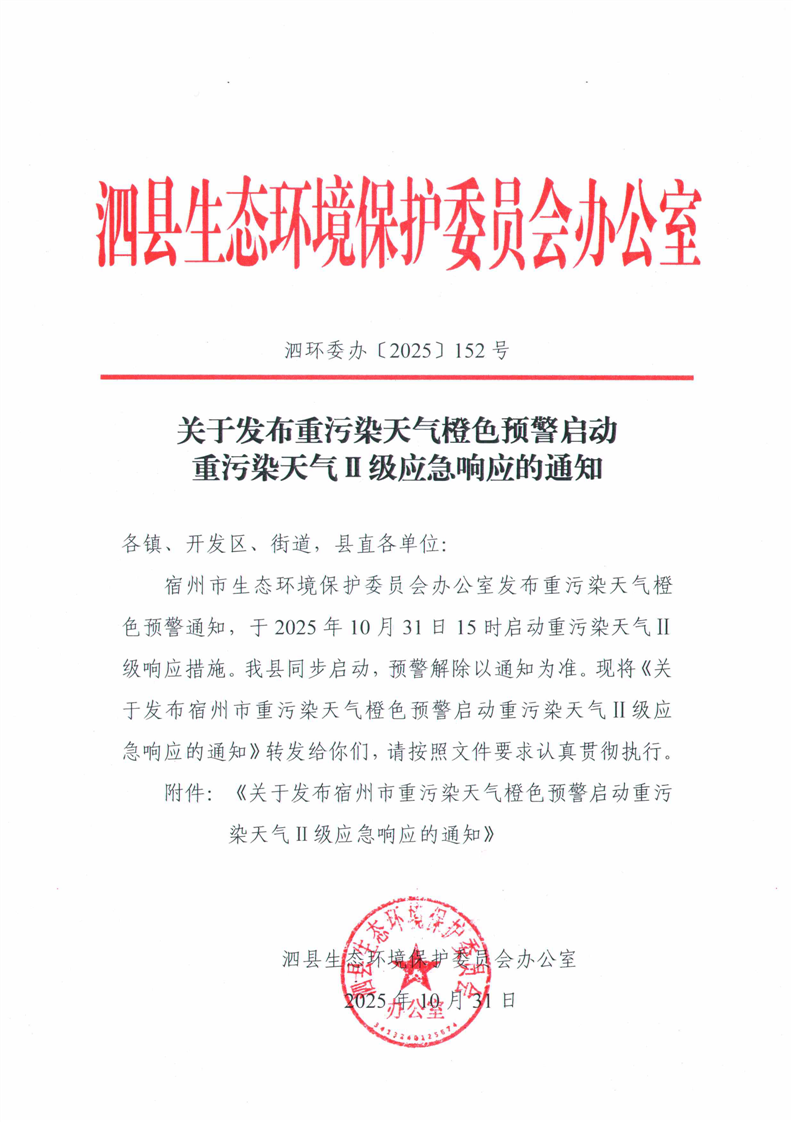 关于发布重污染天气橙色预警启动重污染天气Ⅱ级应急响应的通知 |