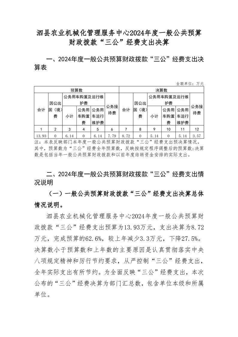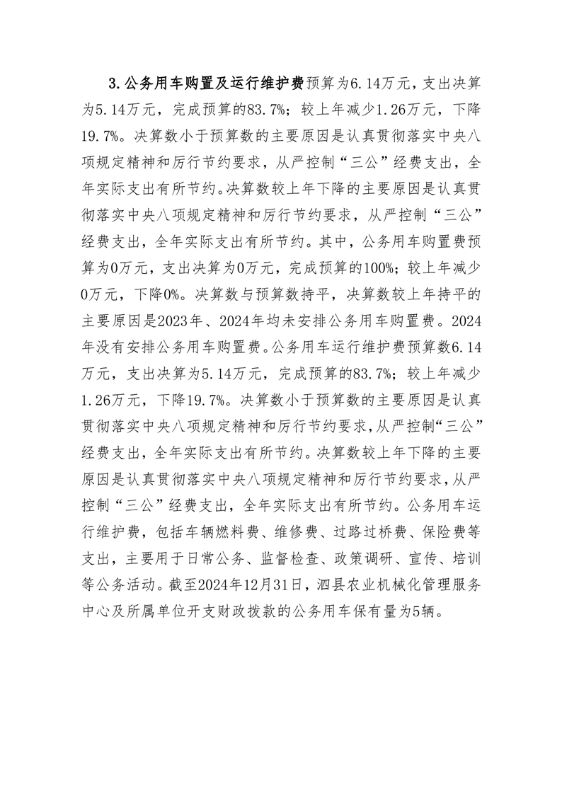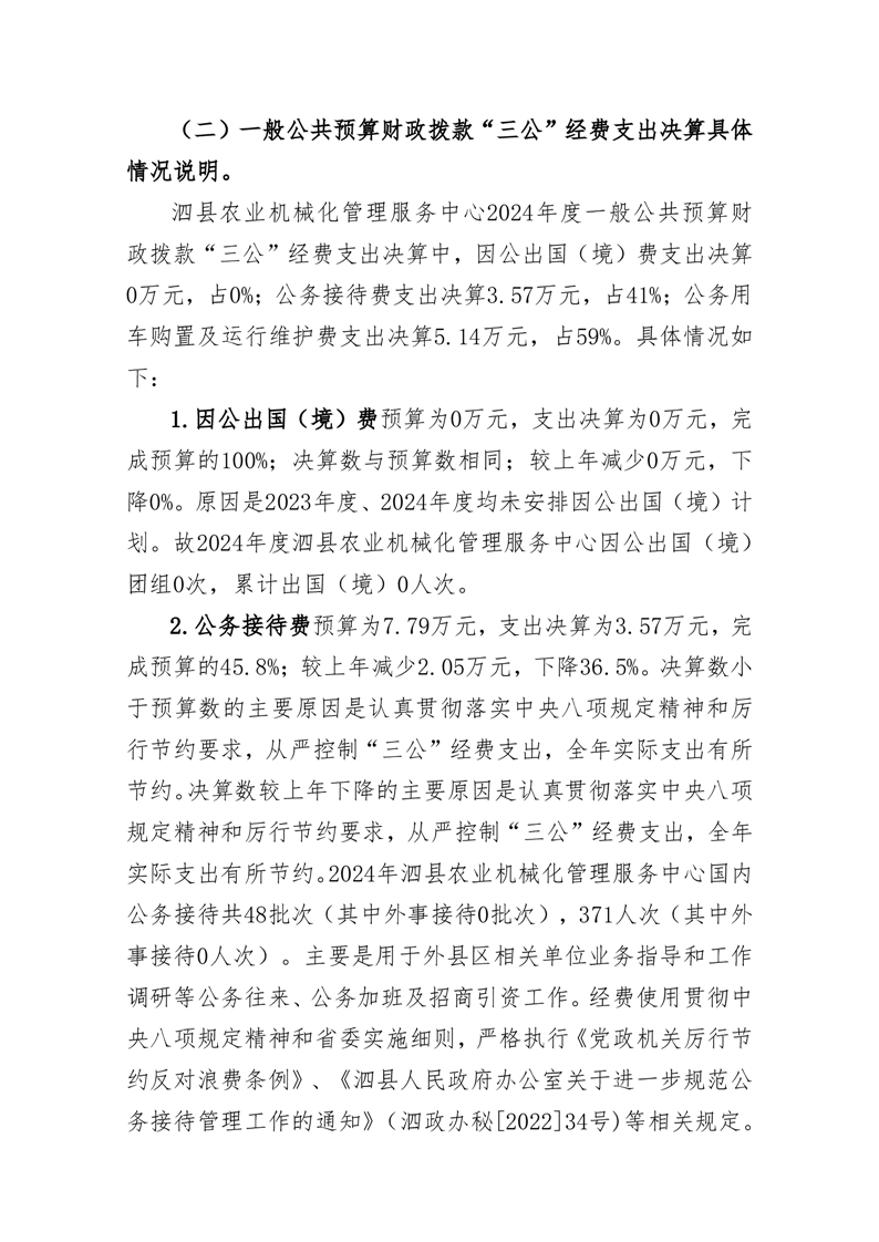 泗县农业机械化管理服务中心2024年度部门一般公共预算财政拨款“三公”经费决算情况说明 |