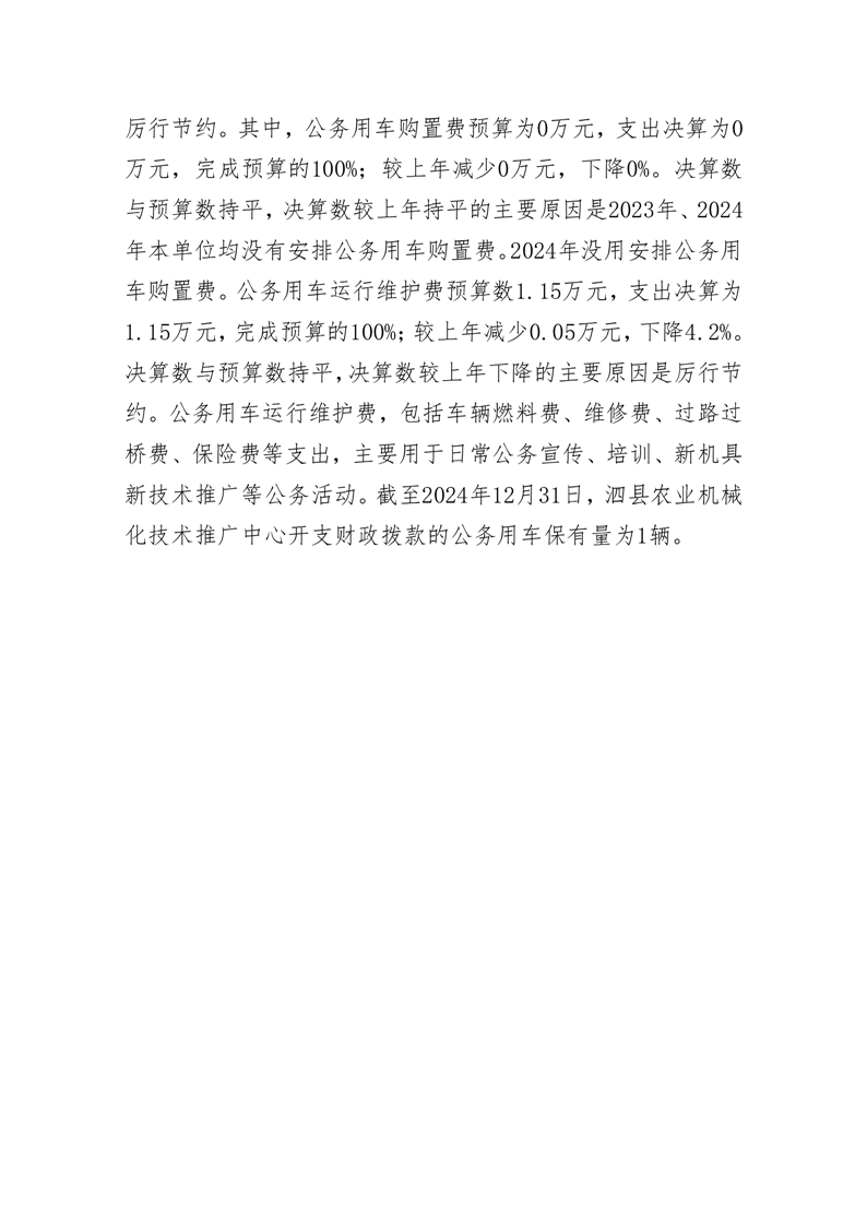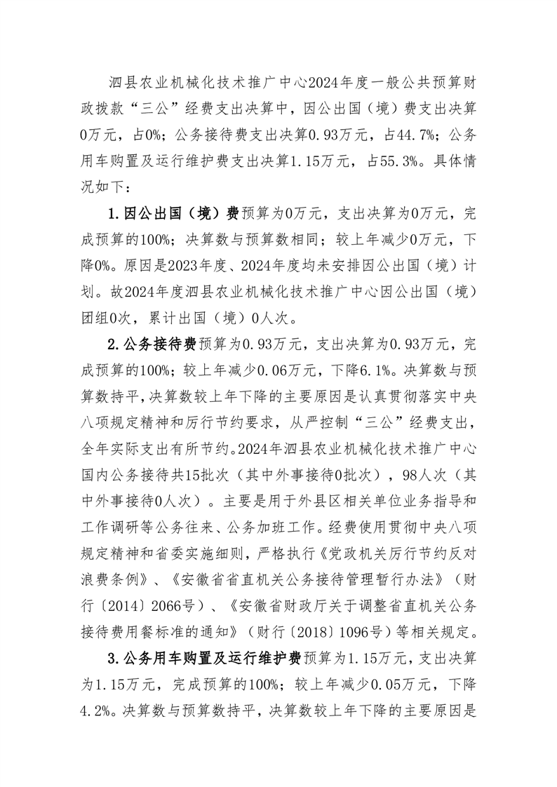 泗县农业机械化技术推广中心2024年度单位一般公共预算财政拨款“三公”经费决算情况说明 |
