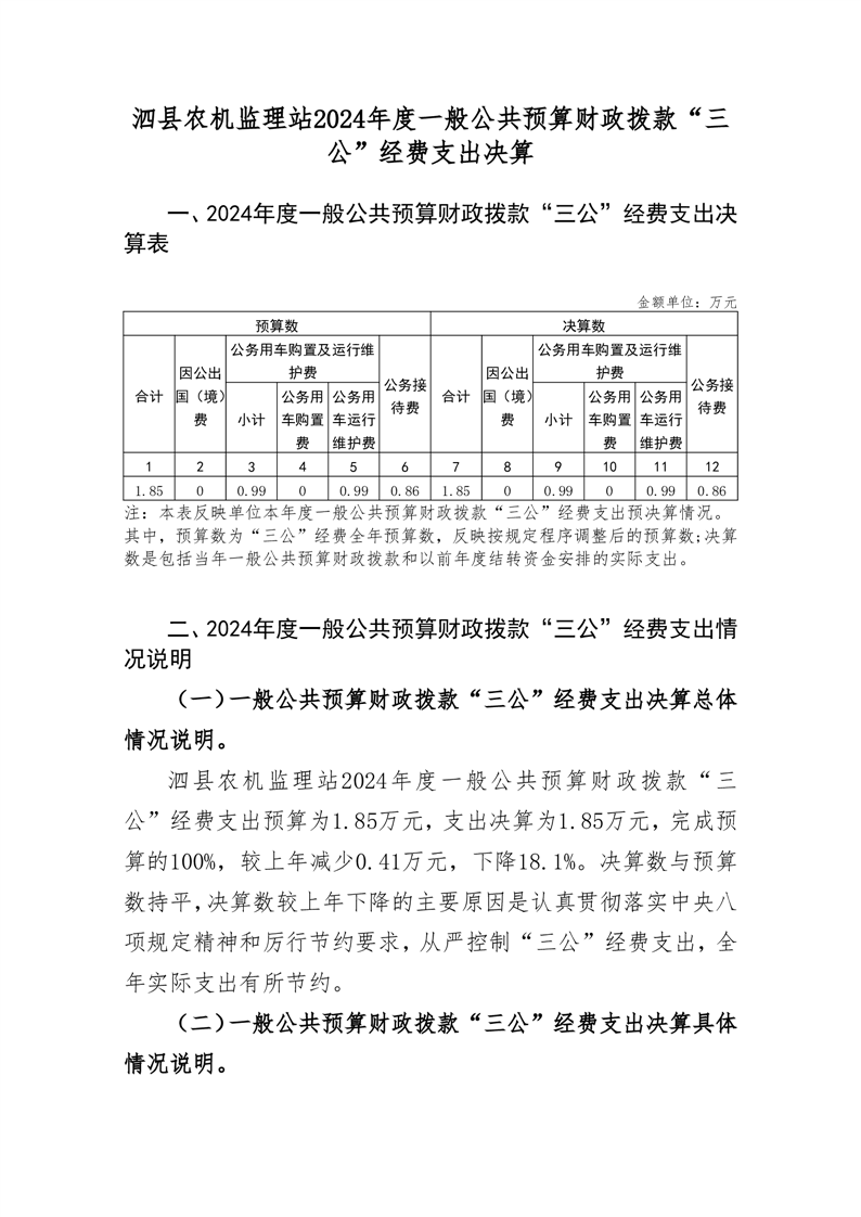 泗县农机监理站2024年度单位一般公共预算财政拨款“三公”经费决算情况说明 |