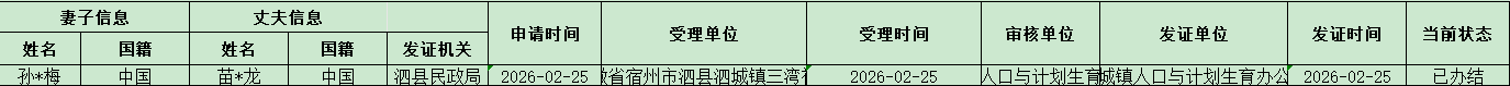 【办理结果】泗城镇2026年2月份受理《生育登记》登记办理情况 |