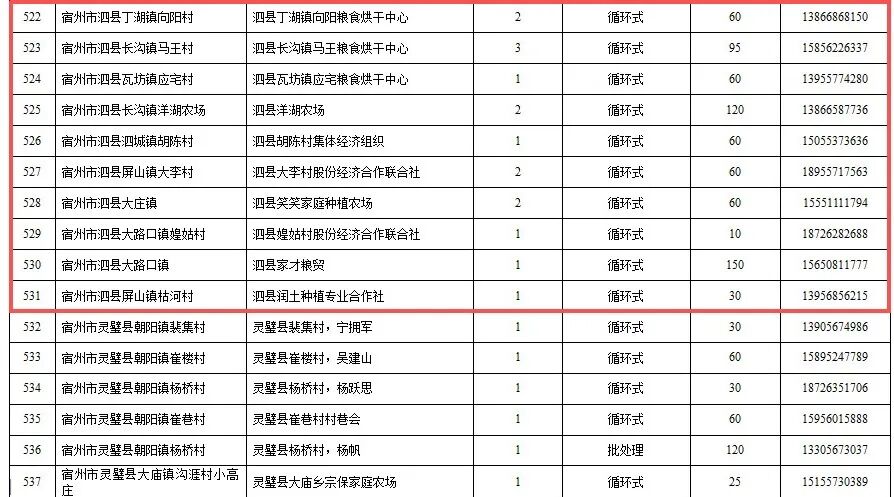 扩散转发!泗县粮食烘干中心(点)信息公布
