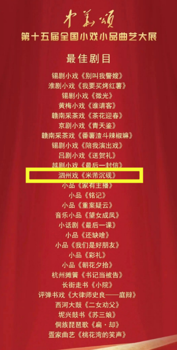 荣获“中华颂”第十五届全国小戏小品曲艺大展