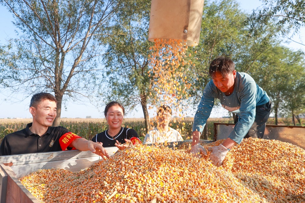 玉米脱粒后装车。吴天元 摄