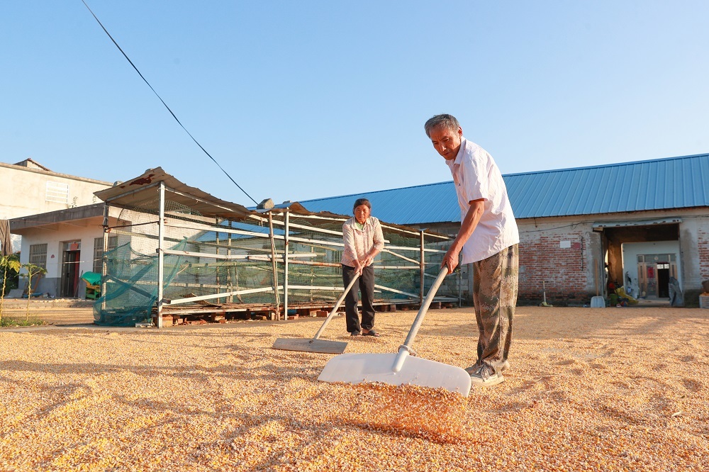 农户在摊晒玉米粒。吴天元 摄