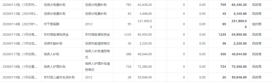 2026年长沟镇1月份惠民惠农补贴公示表 |