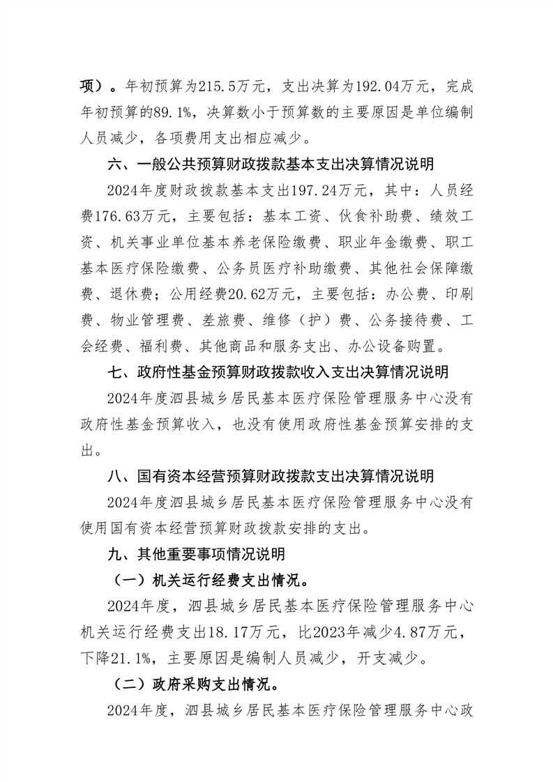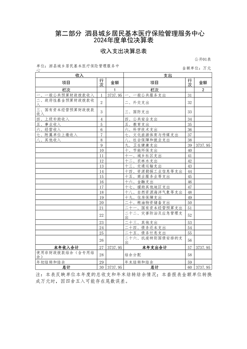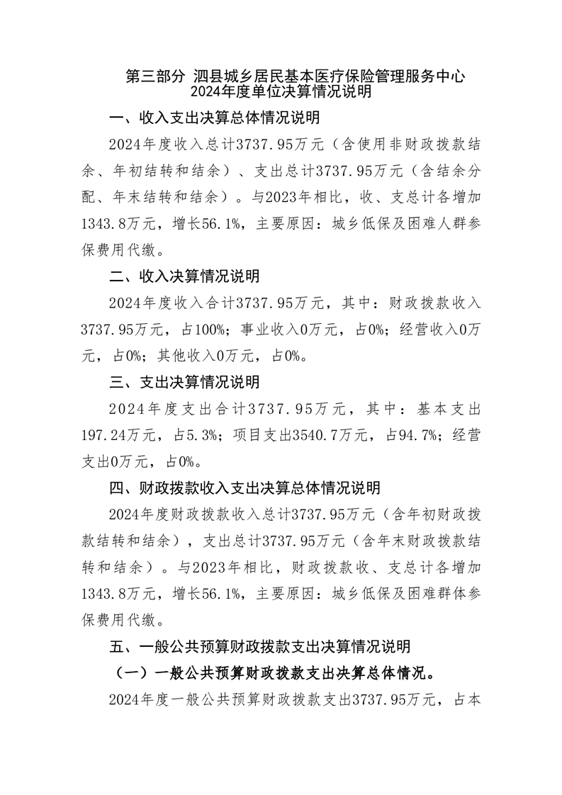 泗县城乡居民基本医疗保险管理服务中心2024年度单位决算公开 |