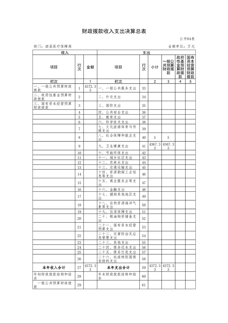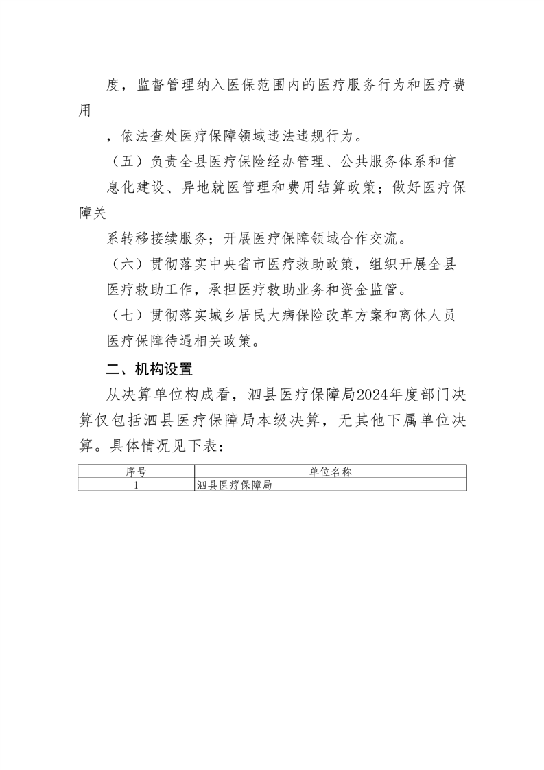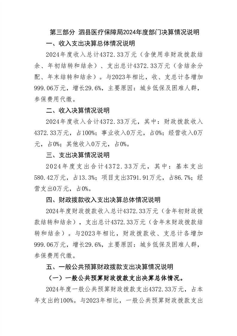 泗县医疗保障局2024年度部门决算公开 |