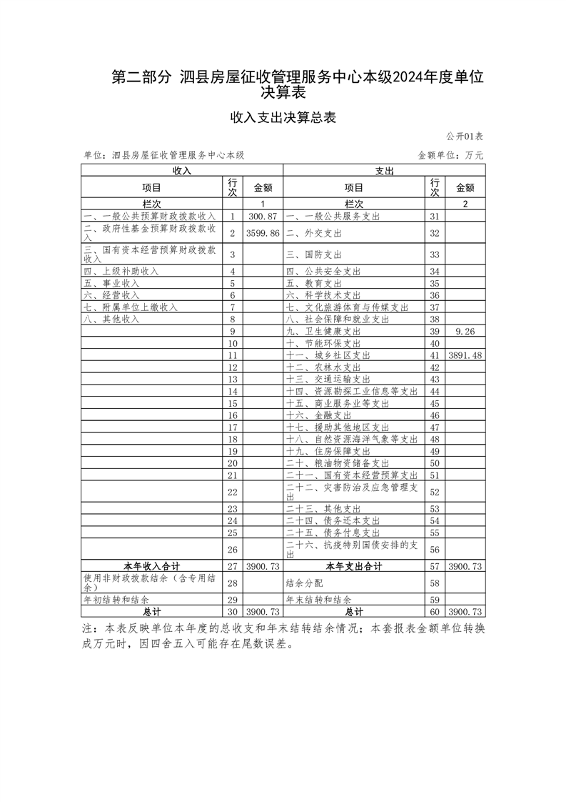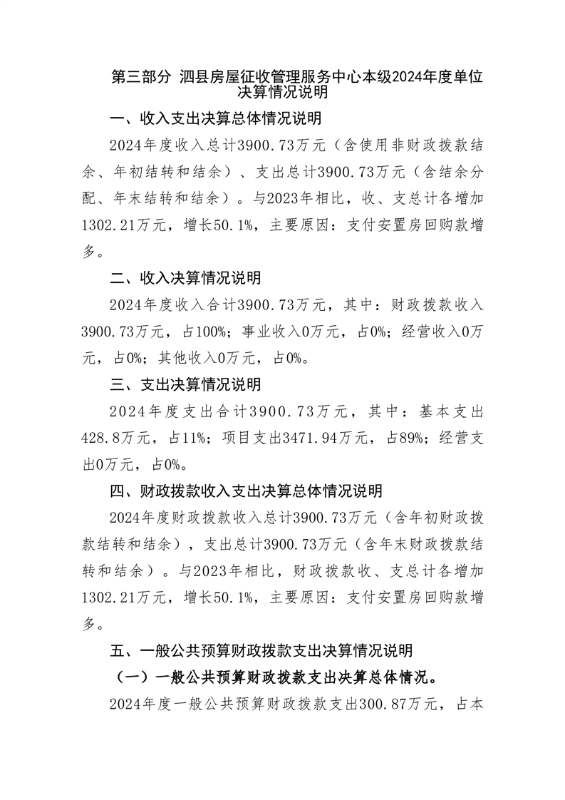 泗县房屋征收管理服务中心本级2024年度单位决算 |