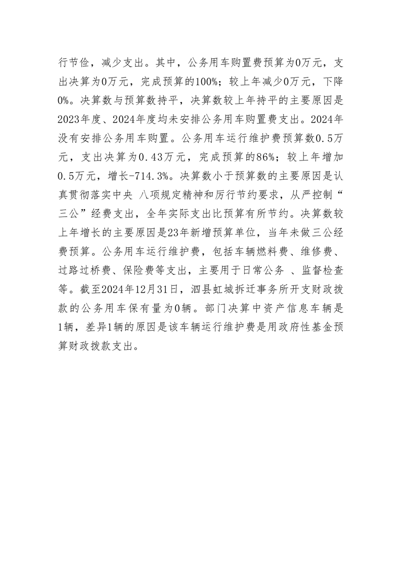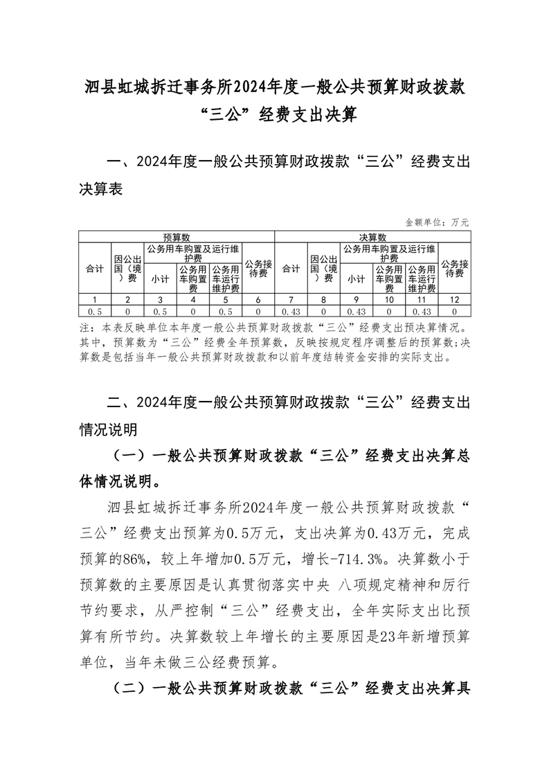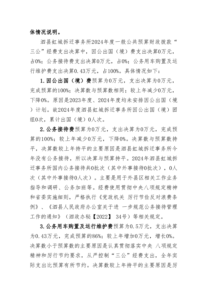泗县虹城拆迁事务所2024年度一般公共预算财政拨款 “三公”经费支出决算 |