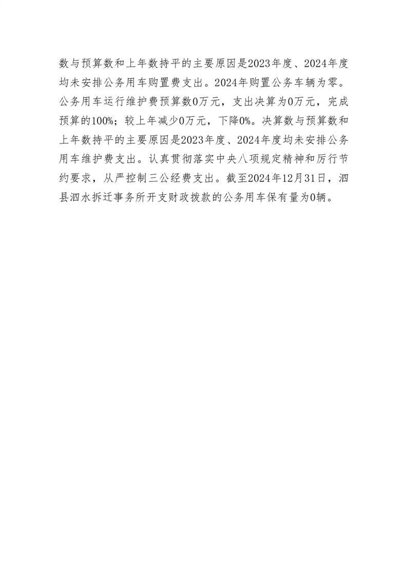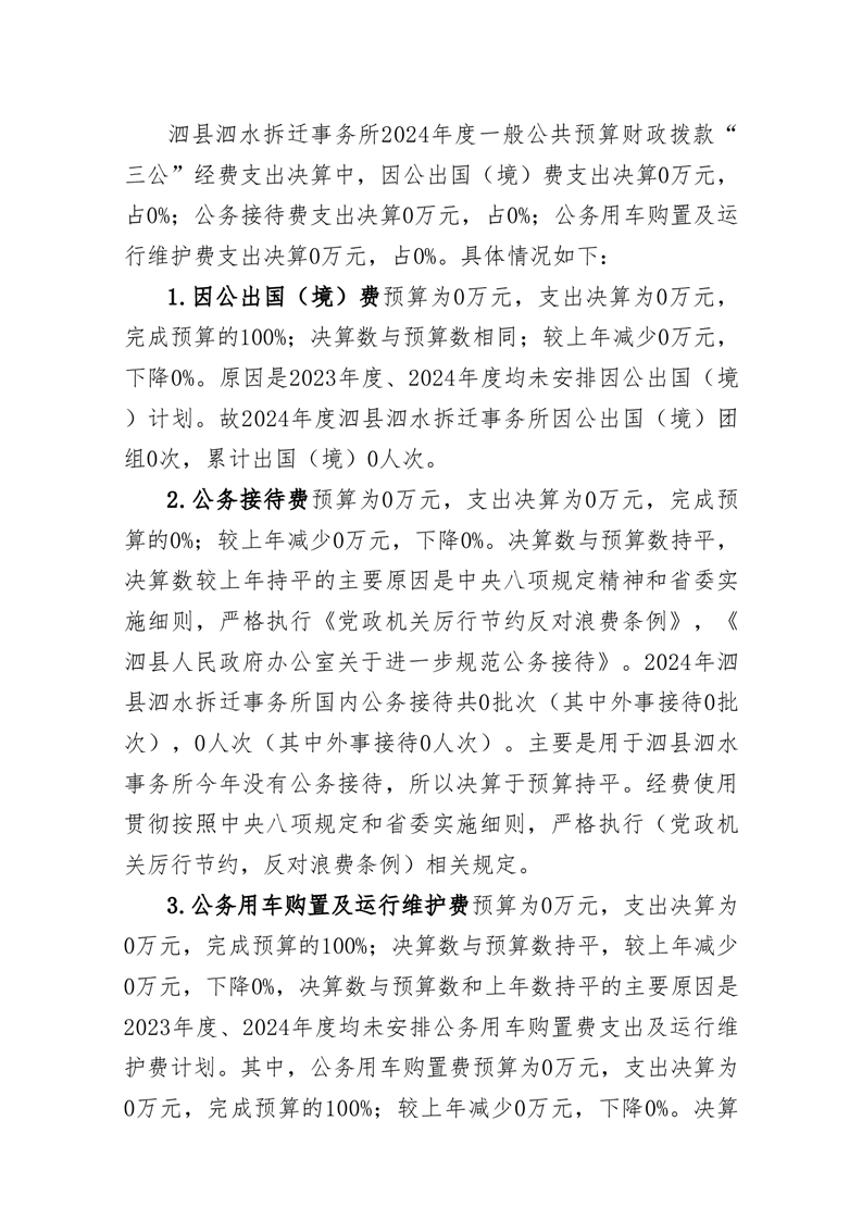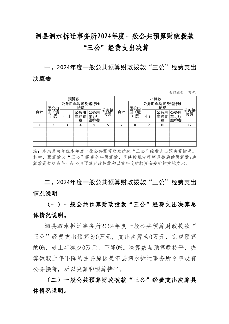 泗县泗水拆迁事务所2024年度一般公共预算财政拨款 “三公”经费支出决算 |