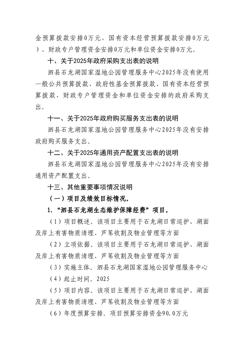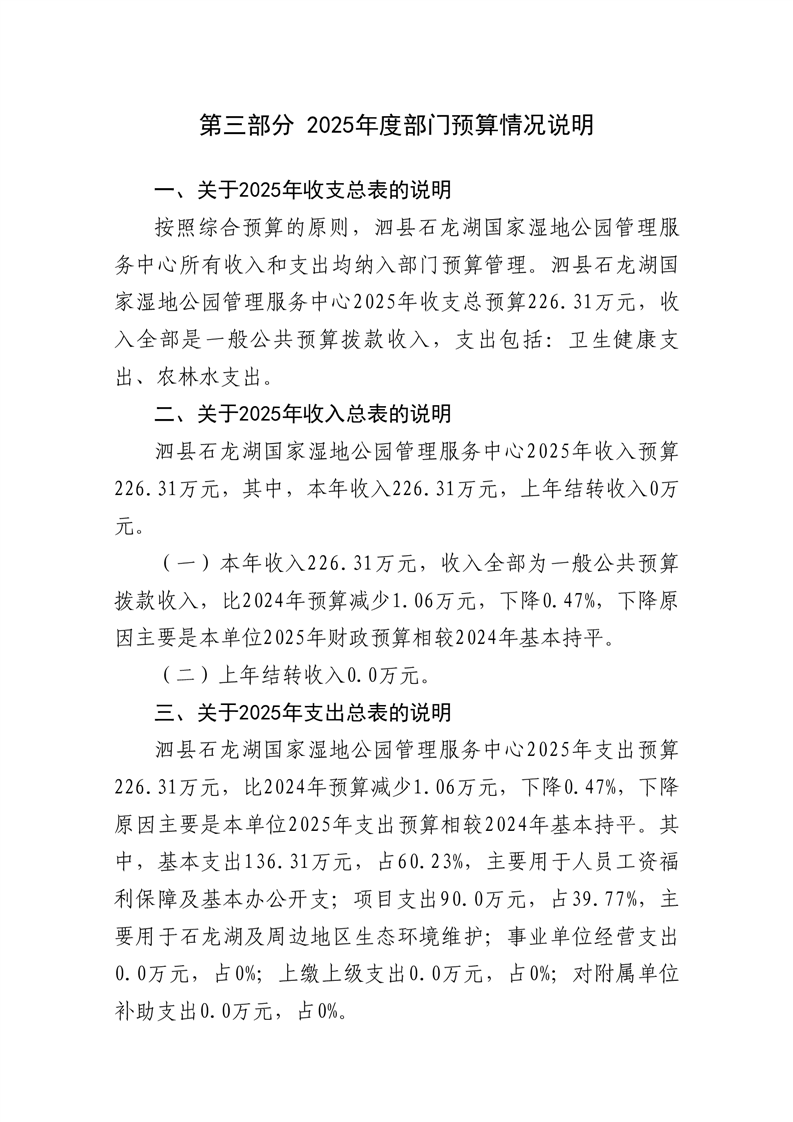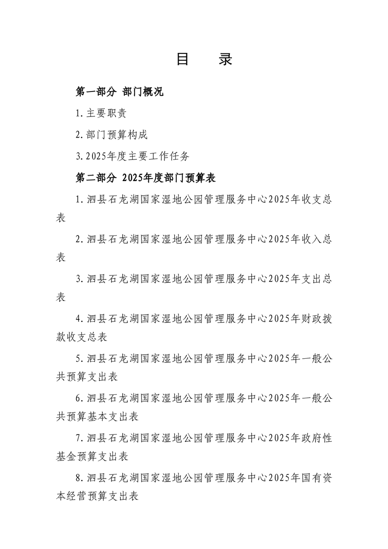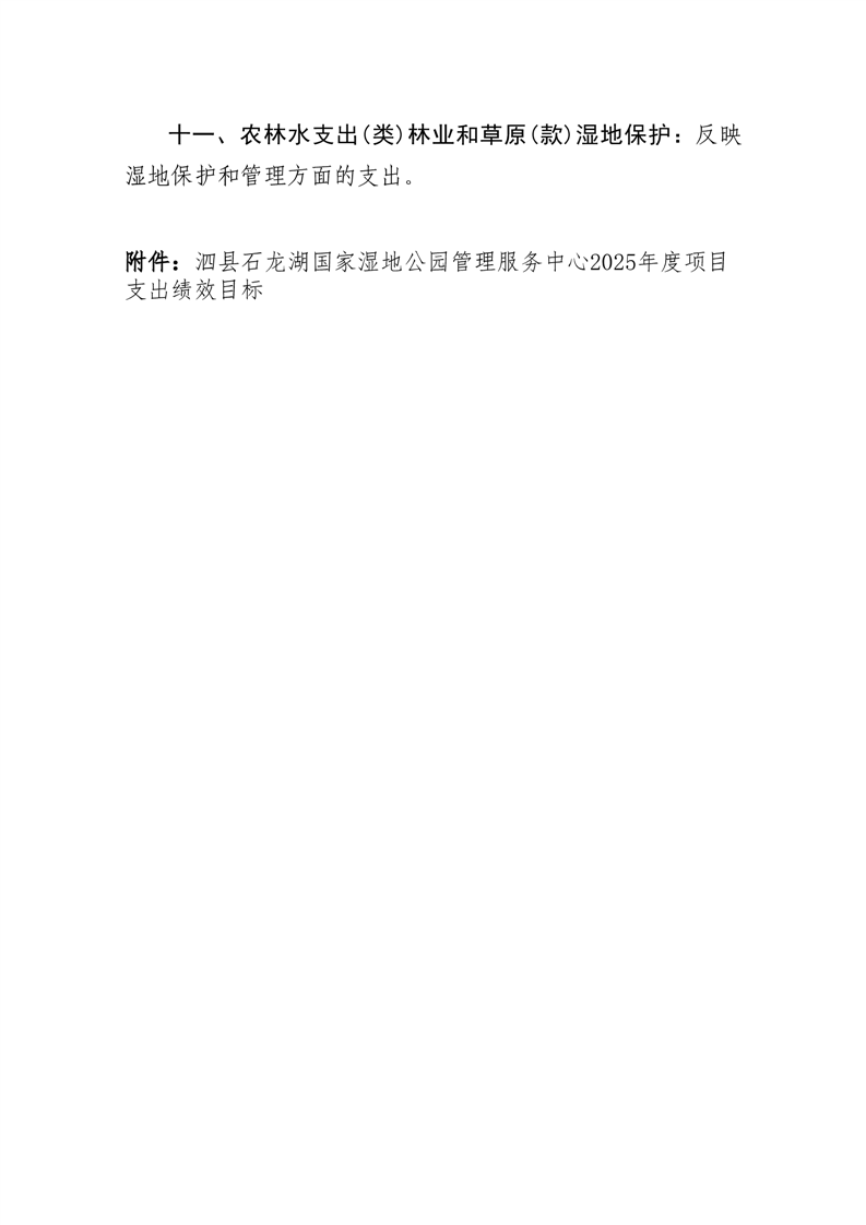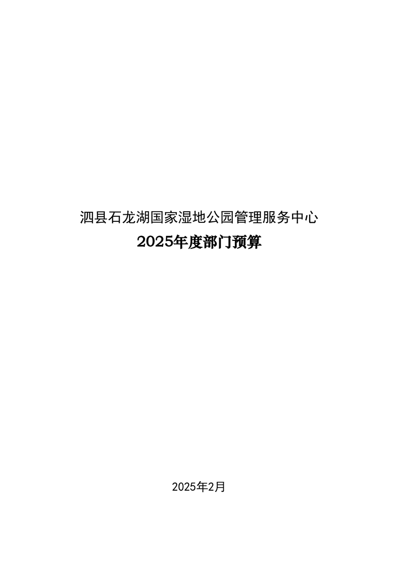 泗县石龙湖国家湿地公园管理服务中心2025年预算公开 |