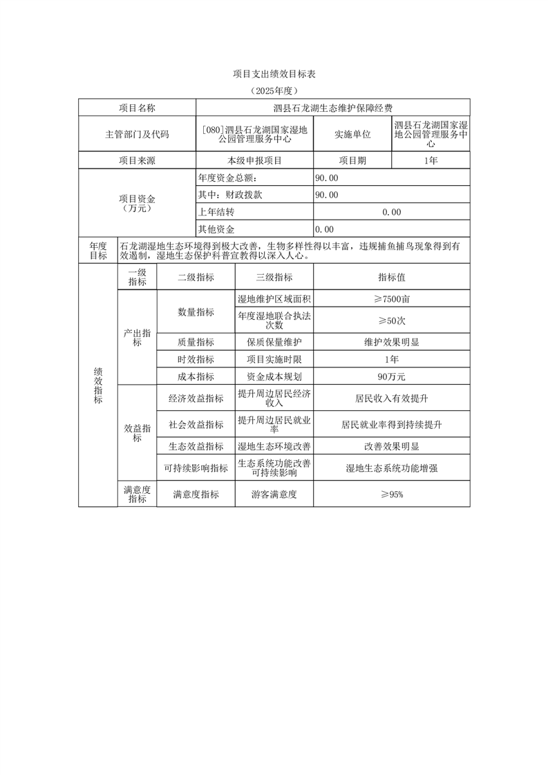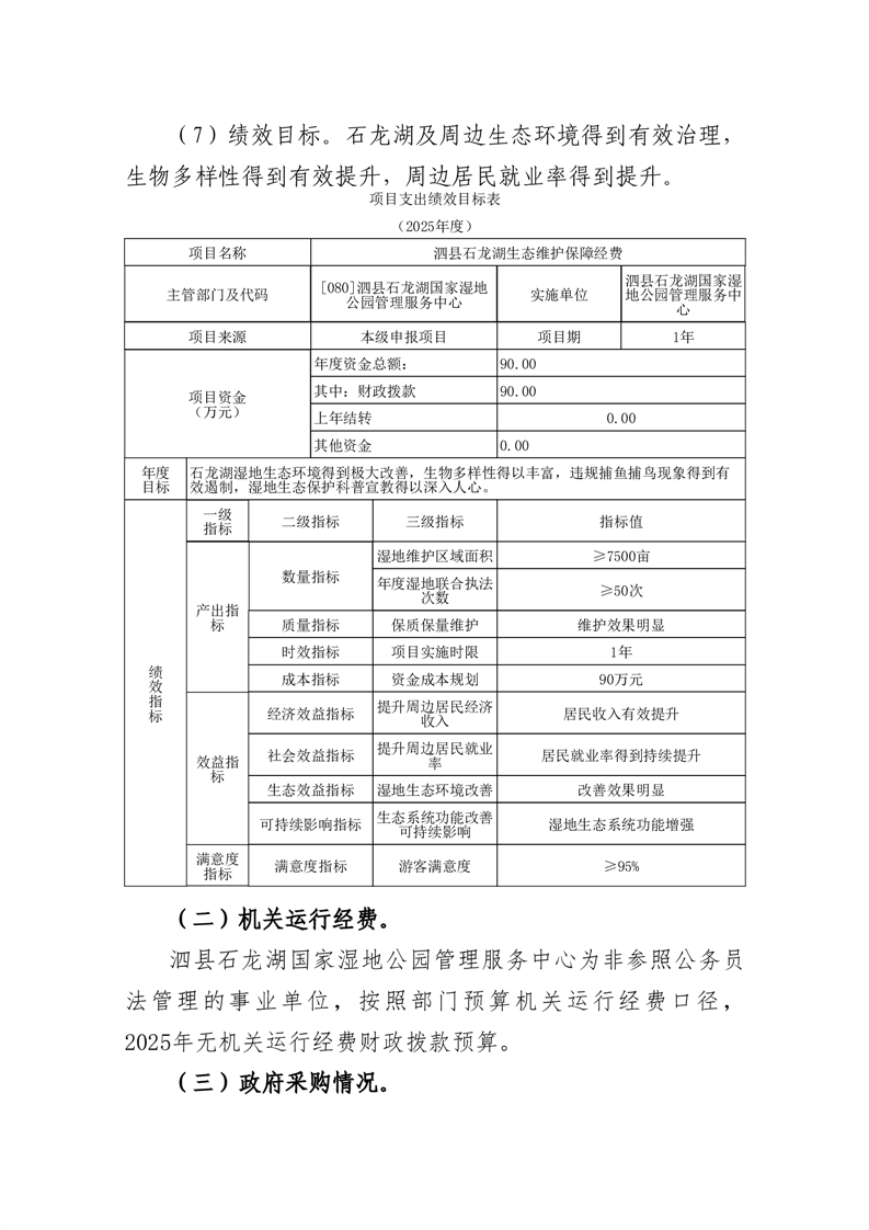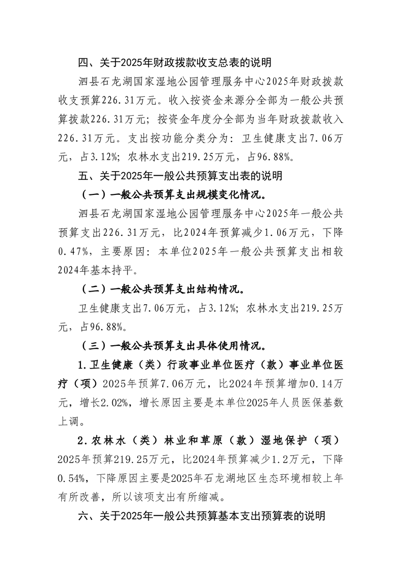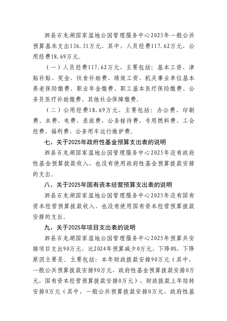 泗县石龙湖国家湿地公园管理服务中心2025年预算公开 |