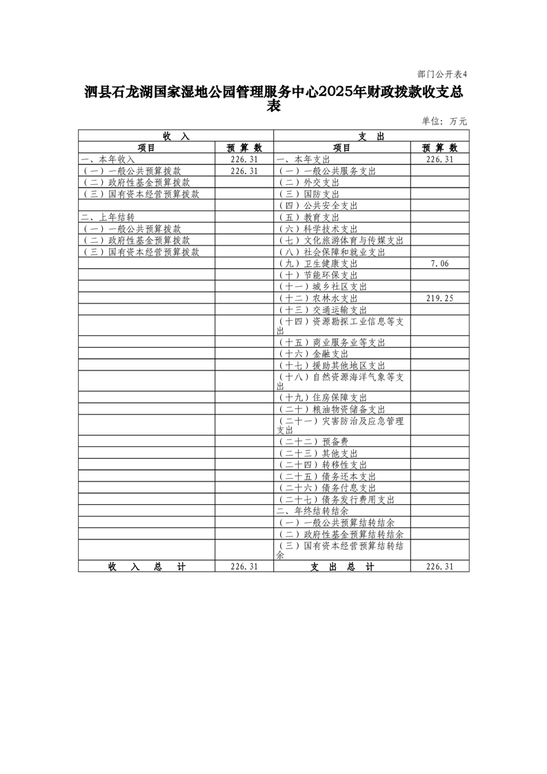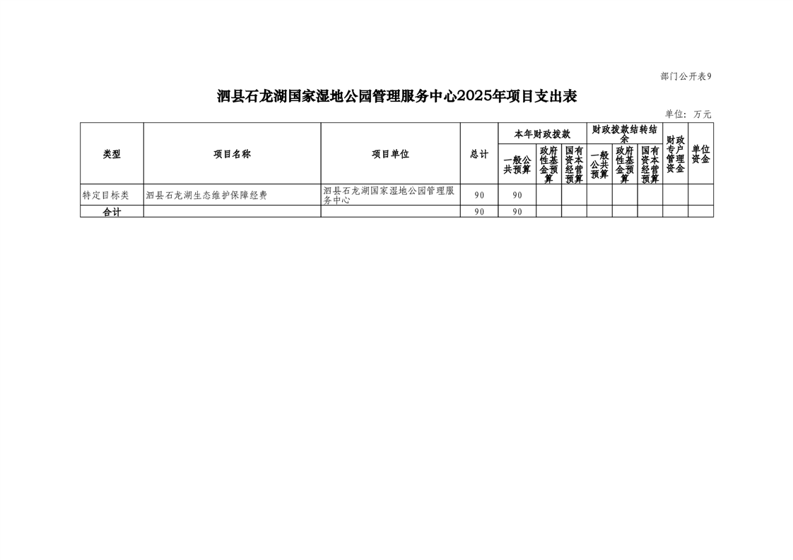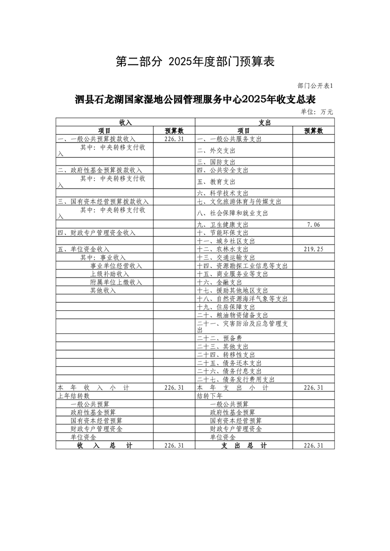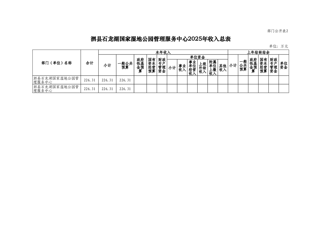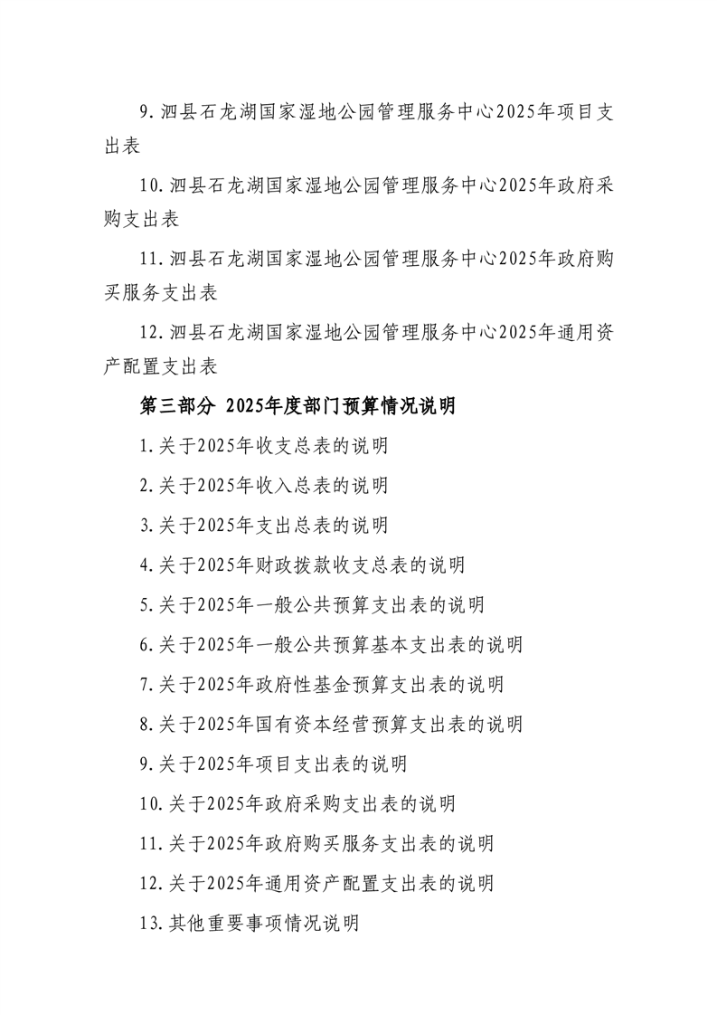 泗县石龙湖国家湿地公园管理服务中心2025年预算公开 |