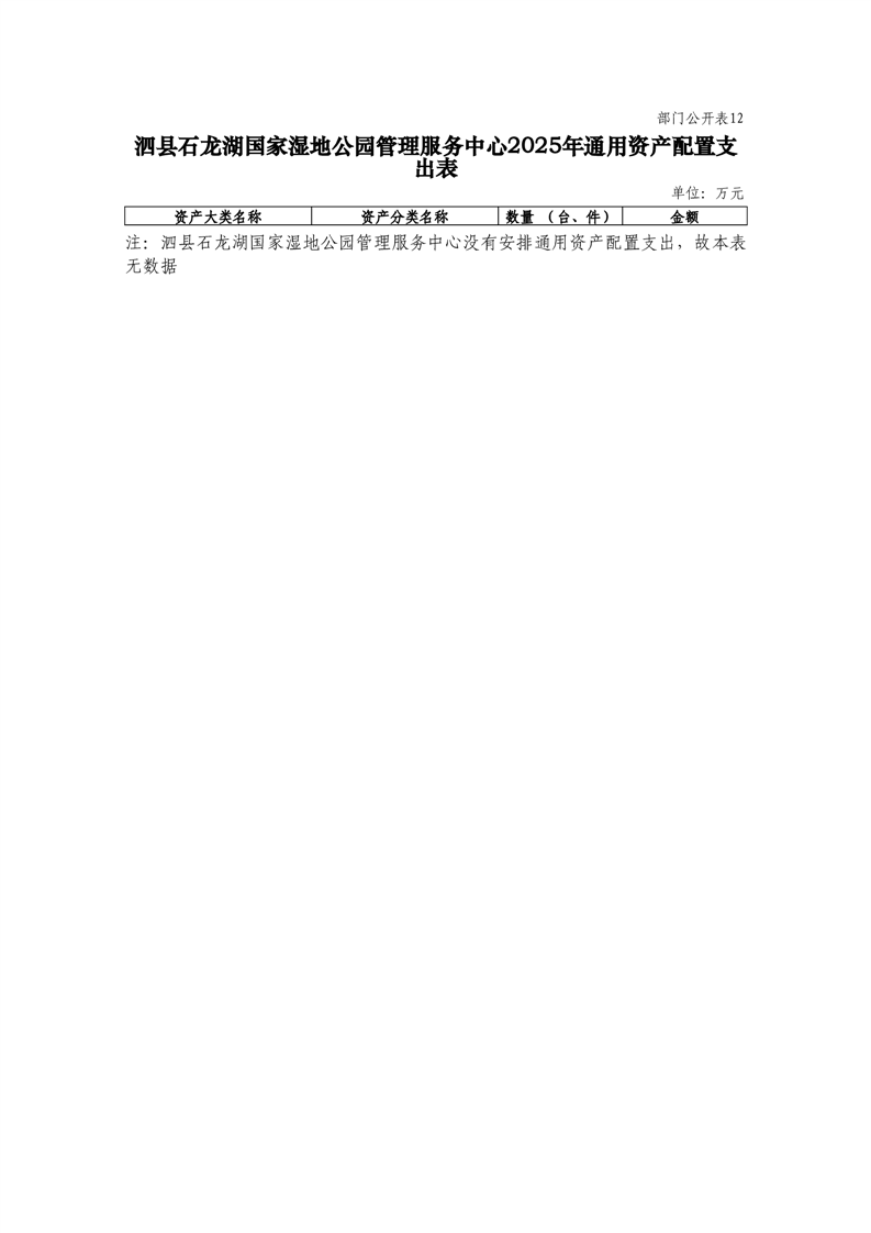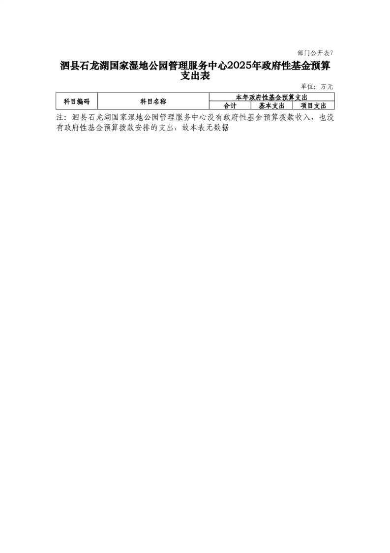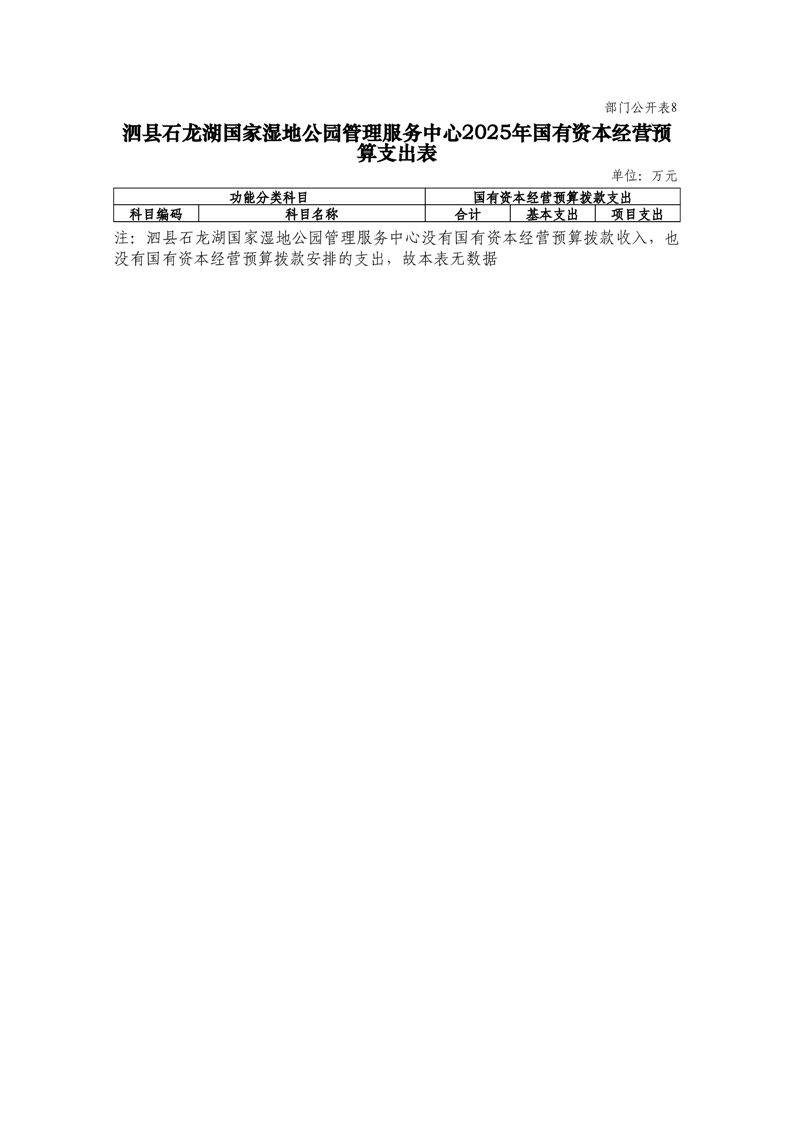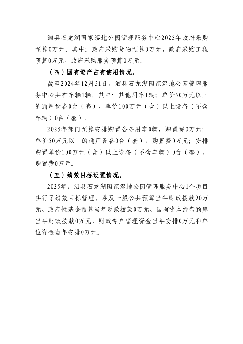 泗县石龙湖国家湿地公园管理服务中心2025年预算公开