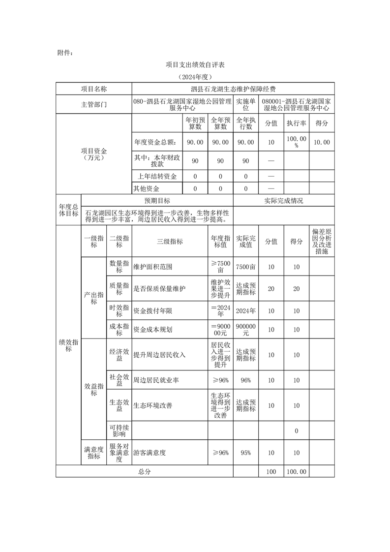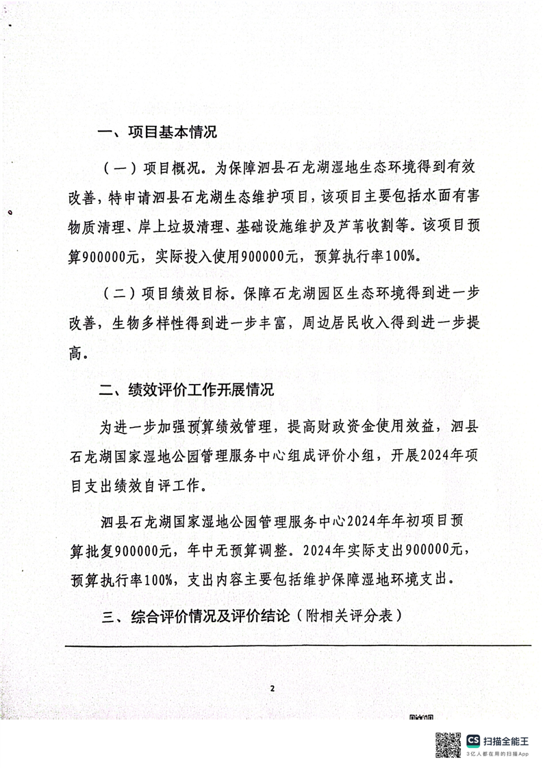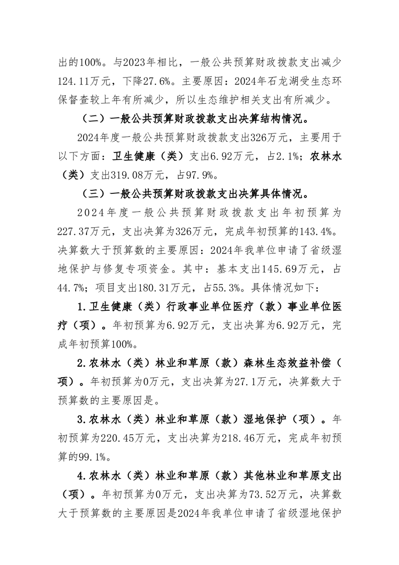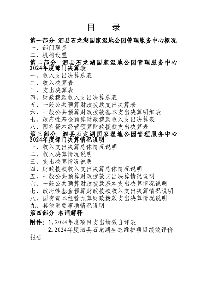 泗县石龙湖国家湿地公园管理服务中心2024年决算公开 |