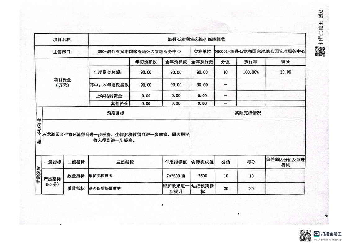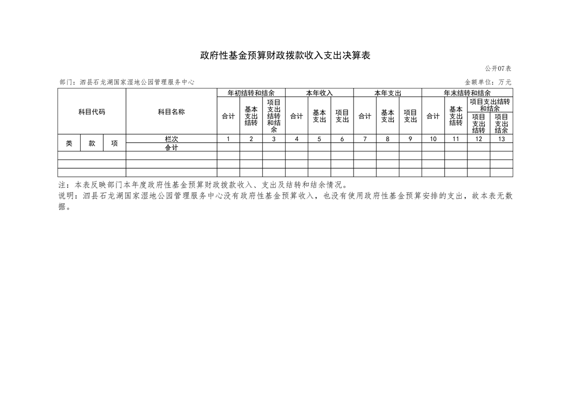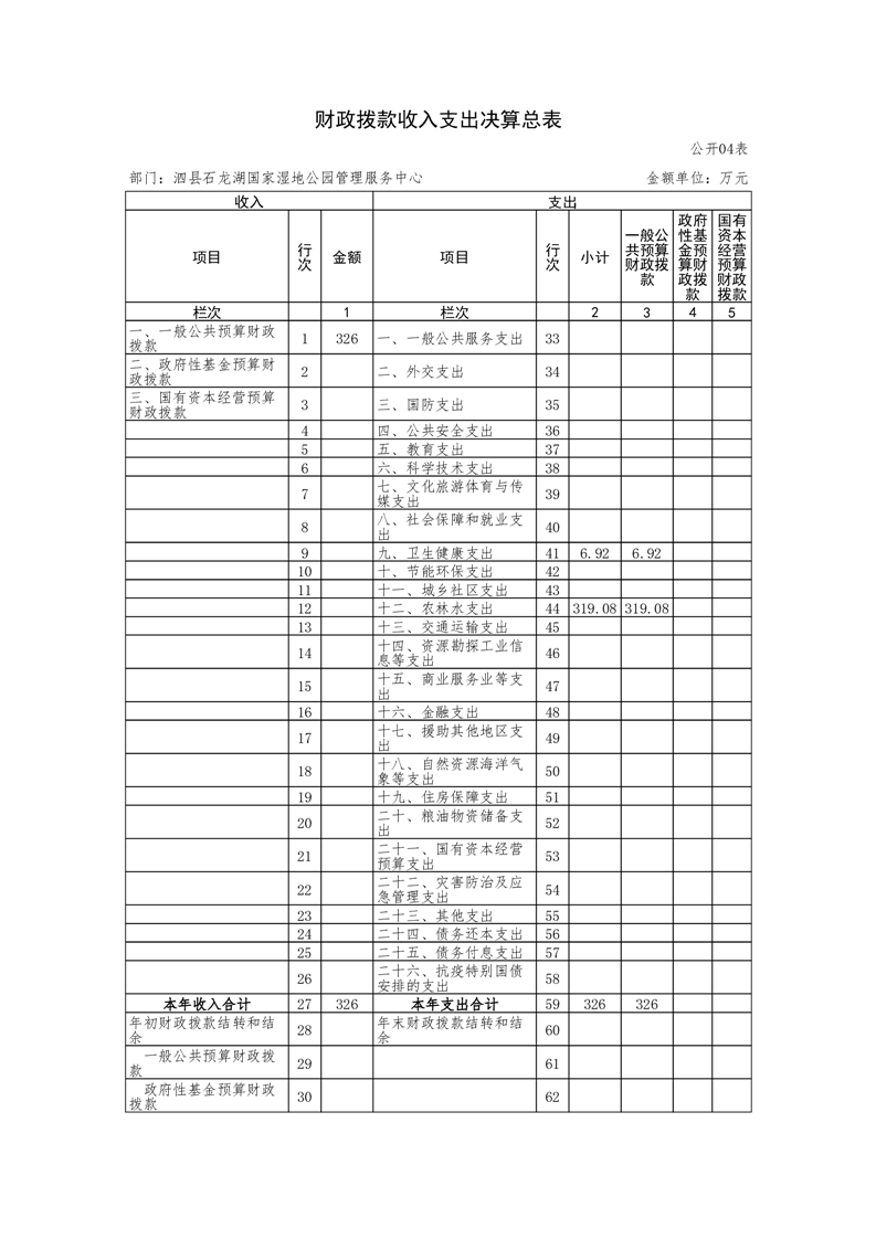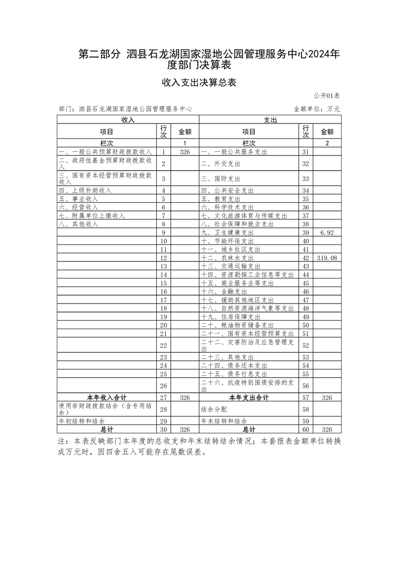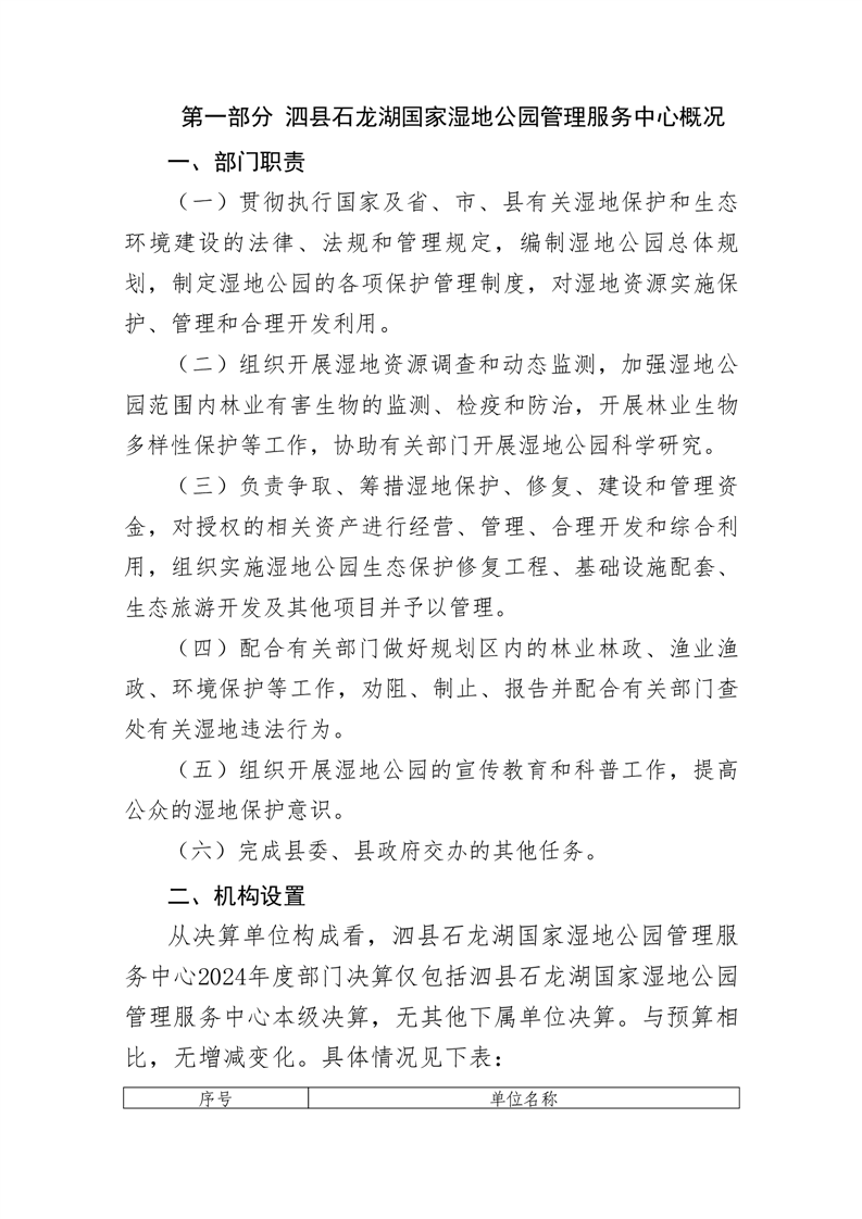 泗县石龙湖国家湿地公园管理服务中心2024年决算公开