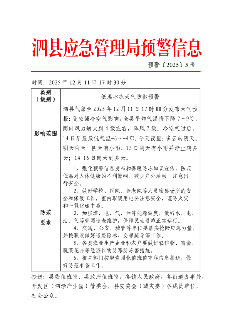 泗县应急管理局预警信息(第5号) |