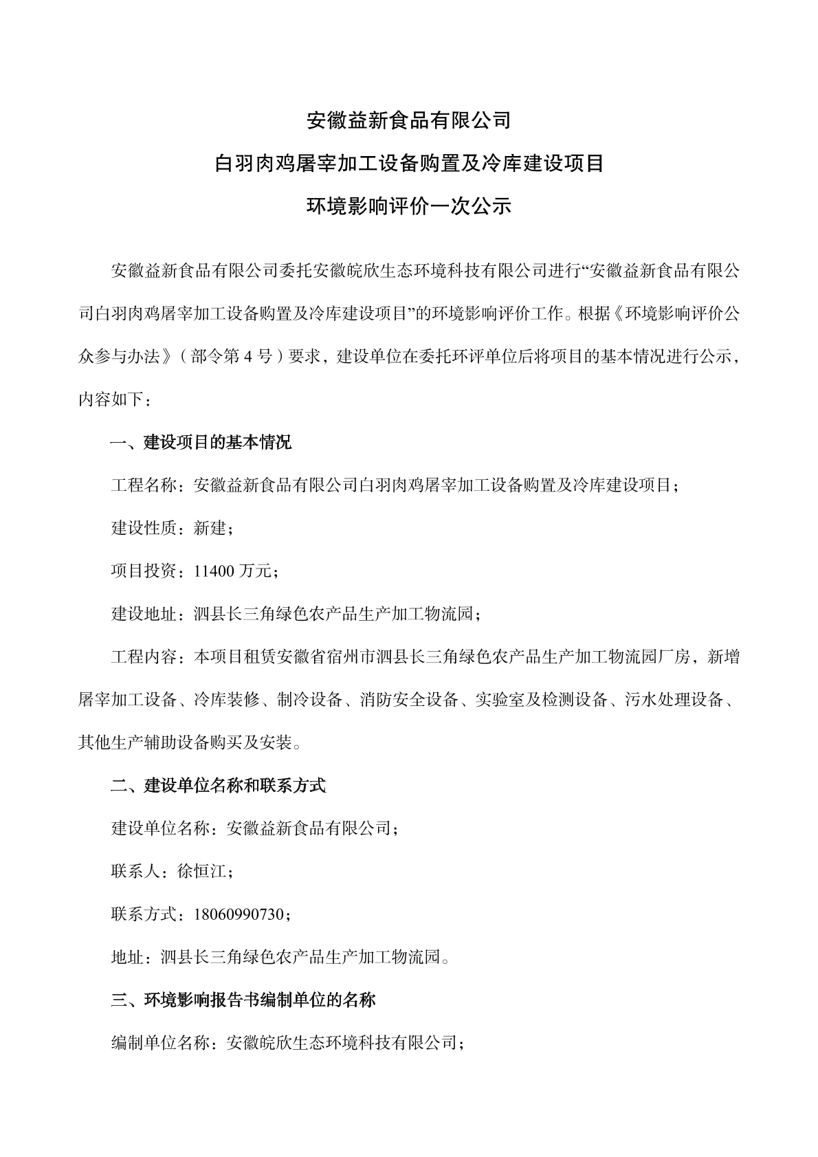 白羽肉鸡屠宰加工设备购置及冷库建设项目一次公示 |