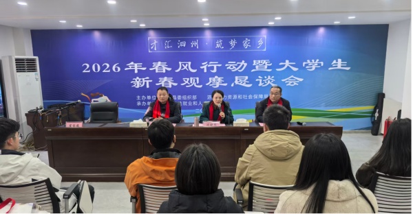 新春伊始,暖意融融。为吸引更多优秀大学生返乡就业创业,汇聚青年才智助力县域高质量发展。2月11日,由县委组织部、县人社局共同主办的“才汇泗州·筑梦家乡”2026年大学生新春观摩恳谈会成功举办。近百名返乡大学生代表齐聚一堂,共话乡情、共谋发展。