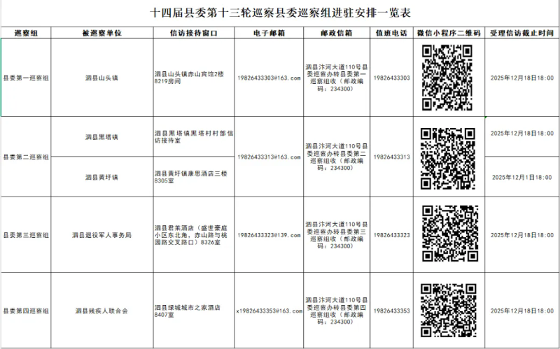 附件:十四届县委第十三轮巡察县委巡察组进驻安排一览表